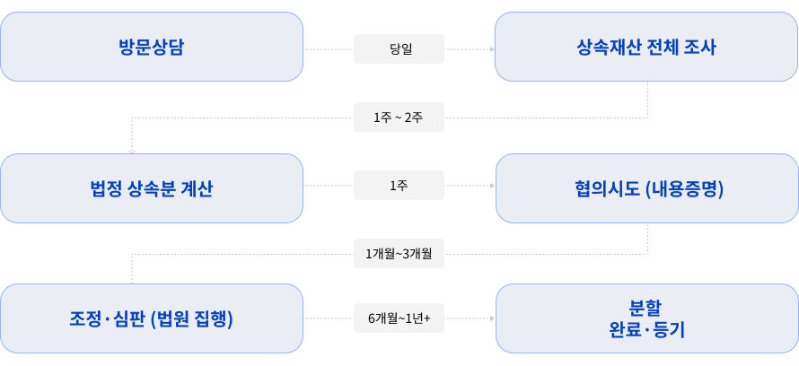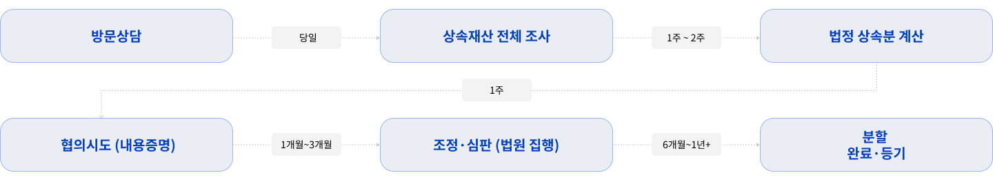그러나 특별수익(생전 증여)과 기여분을 반영하면 실질적인 분할 비율이 달라집니다. 단순히 “1/n”이 아닌, 공정한 실질 분할을 설계합니다.